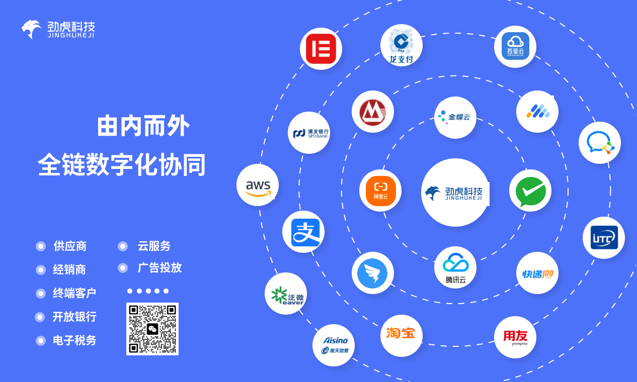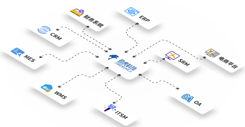 支持市面上主流ERP/WMS/CRM/SRM/OA/开放银行/电商平台/第三方支付/电子合同/云服务应用集成