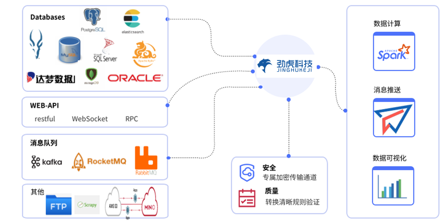 支持数据库直连/restful webapi/kafka/mq消息队列/FTP/S3文件传输等多样化的数据集成接口
