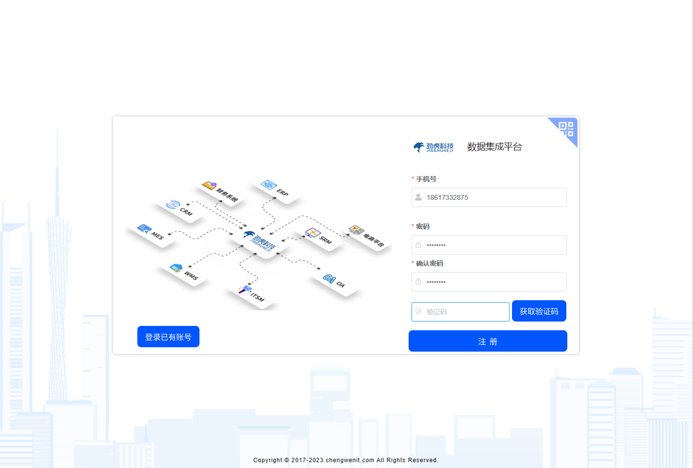 输入注册时填写的手机号和密码后,根据提示输入验证码即可点击登录进入系统